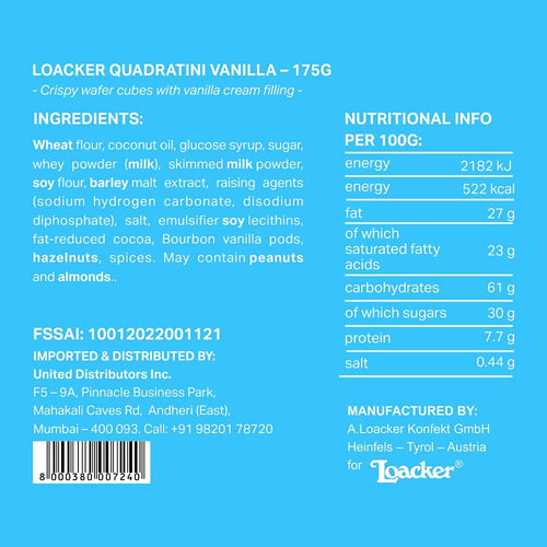 Classic vanillaCrema alla vanillaLo snack per tutta la famigliaPer una pausa gustosaLeggeri ma gustosi al contempoDescrizione Loacker Wafer Vanille - 175 gr Ingredienti Olio di cocco...