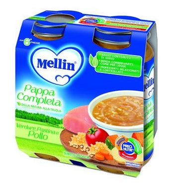 Mellin Pappa Completa Verdure Pastina e Pollo 100% Naturale – 12 Vasetti da 250 gr
