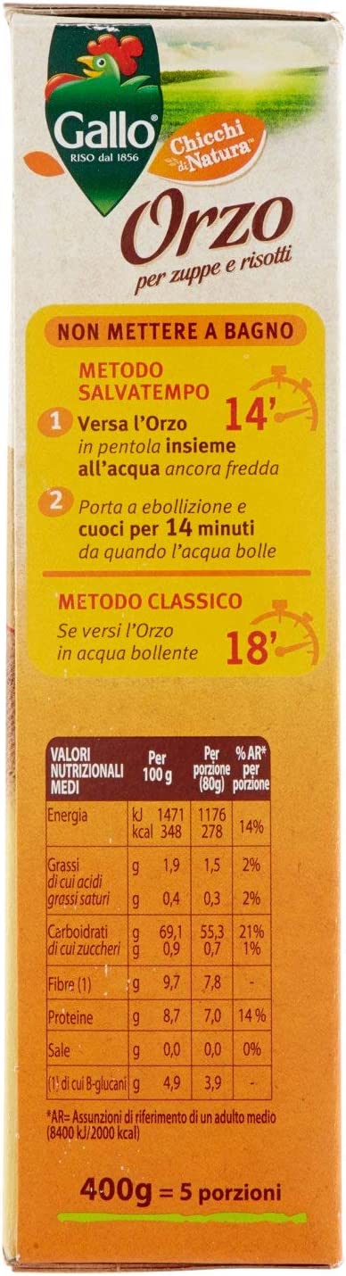 Orzo perlato precottoFonte di fosforo e fibre, essenziali per una corretta alimentazioneContiene naturalmente betaglucaniIdeale per preparare insalate, zuppe, contorni, ripieni o semplicemente bollitoCuoce in 16-18 minutiDescrizione...