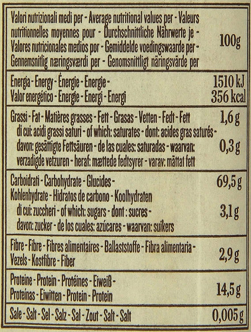 CONTIENE 9 CONFEZIONI DA 500gr:2 X SPAGHETTI - 1 X SPAGHETTI GROSSI 220 - 1 X BUCATINI - 1 X PENNE RIGATE1 X GOMITI RIGATI -...