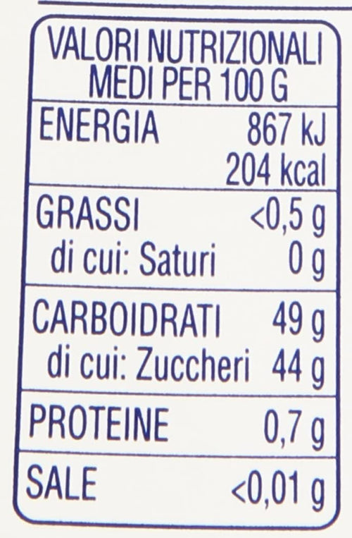 Confiture extra, fici, zucchero, sciroppo di glucosio, gelificante: pektina, correttore acido: acido citrico. Frutta utilizzata: 57 g per 100 g di bicchiere da 350 g.codice: B01NCMB2L3