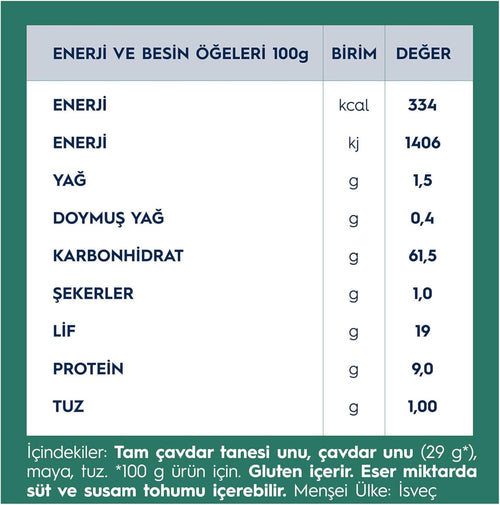 Le informazioni seguenti si applicano a ciascuna unità della confezioneINTEGRALI - Fette croccanti dal sapore autentico con farina integrale di segale, extra sottili e dal sapore...