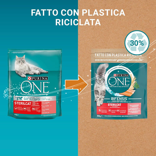 PURINA ONE Bifensis Crocchette Gatto Sterilcat Ricco in Salmone e Frumento - 8 sacchi da 800g ciascuno