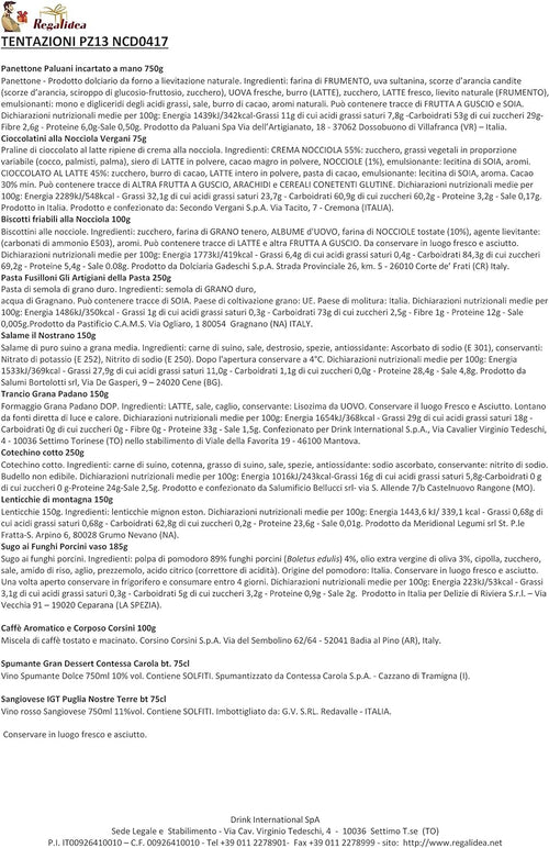 Cesto Natalizio Regalidea Tentazione - 6200 g Dimensioni prodotto 57,6 x 37 x 27 cm; 6,2 Kg Nome del prodotto Tentazione Unità 1 unità Istruzioni di...