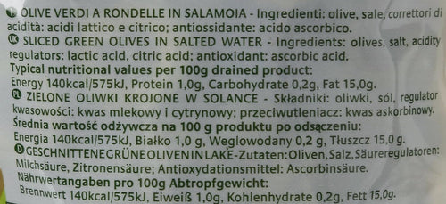 Olive verdi denocciolate in salamoiaSono l'accompagnamento ideale per i tuoi aperitiviIdeale come antipasto sfizioso o in qualsiasi ricetta fantasiosaSenza glutineGli ingredienti sono tanto semplici quanto naturaliDescrizione...