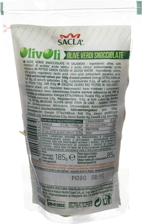 Saclà Olivoli, Olive Verdi Snocciolate in Salamoia - 185 g