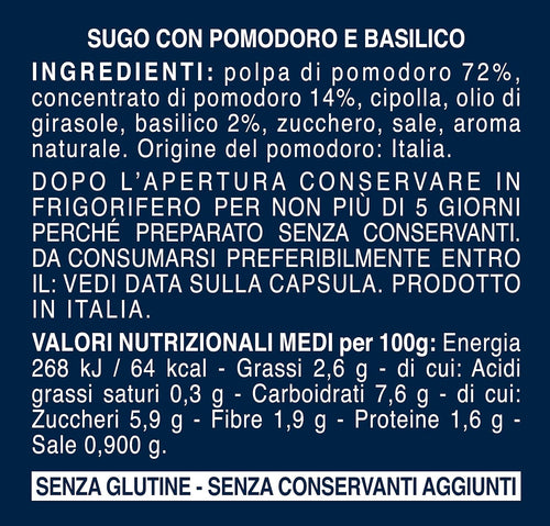 DONAZIONE A BANCO ALIMENTARE - Barilla Sugo al Pomodoro e Basilico Salsa Pronta, senza Glutine, 400g