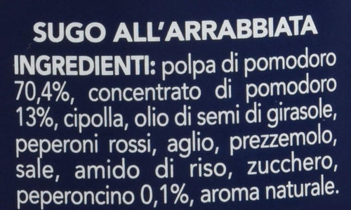 Sugo all'arrabbiataDopo l'apertura conservare in frigorifero per non più di 5 giorniUtilizzo: Scaldare a fuoco lento o in microonde dopo aver tolto la capsula e versare...