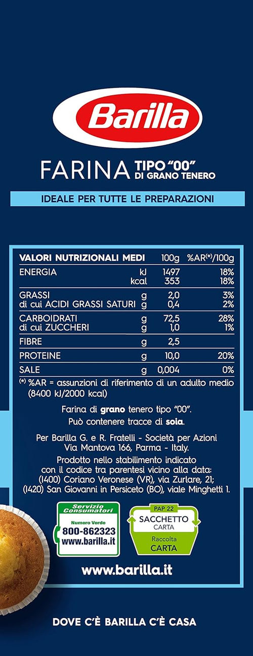 Faremo il possibile per consegnarti questo prodotto ad almeno 45 giorni dalla scadenzaBarillaDescrizione Barilla - Farina di Grano Tenero per tutte le preparazioni - 1 kg...