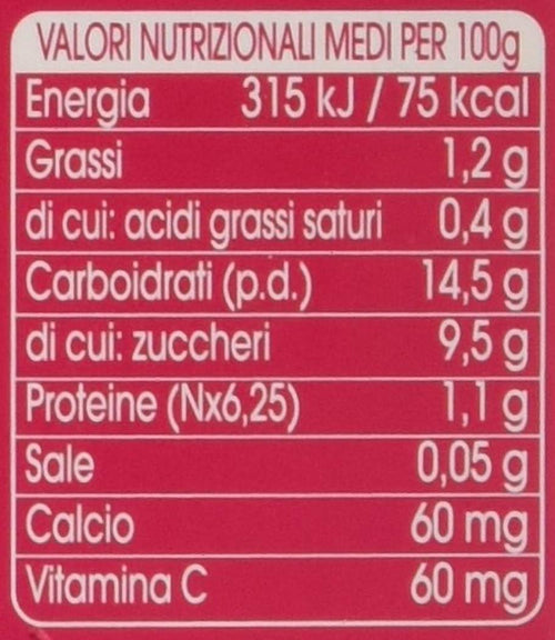 Dall'inizio dello svezzamentoProdotto in Italia con Yogurt Italiano. Senza zuccheri aggiunti, contiene naturalmente zuccheri.Fonte di Calcio. Aiuta il normale funzionamento del sistema immunitario*. *La Vitamina C...