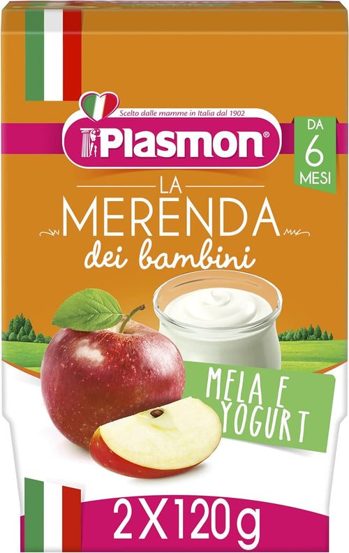 Plasmon Omogeneizzato La Merenda Nutri-Mune Mela e Yogurt 120gr 24 Vaschette Con mele e yogurt italiani, Solo zuccheri della frutta e dello yogurt