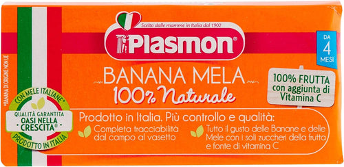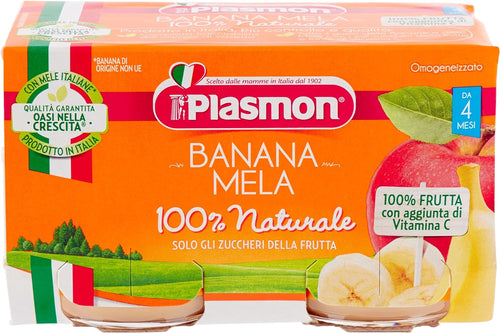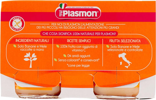 Plasmon Omogeneizzato Frutta Banana con mela 104g 24 Vasetti con Frutta selezionata, 100% naturale, con aggiunta di Vitamina C