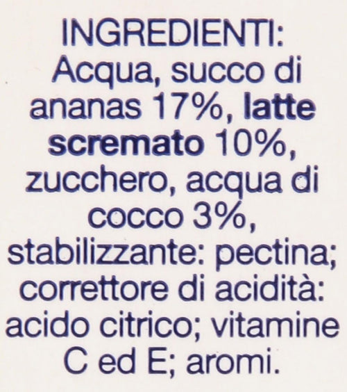 GUSTO VELLUTATO: il gusto autentico dell'ananas e del cocco, così squisitamente morbido e vellutato che ad ogni sorso ti accarezza il palatoCON UNA GOCCIA DI LATTE:...
