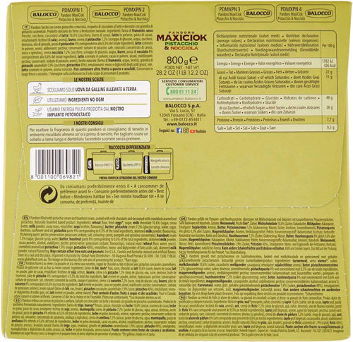 Pandoro farcito con golose creme al pistacchio e alla nocciola, ricoperto di cioccolato fondente e granella di pistacchio caramellato. Il Pandoro MaxiCiok pistacchio e nocciola, è...