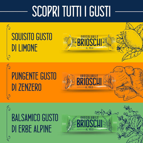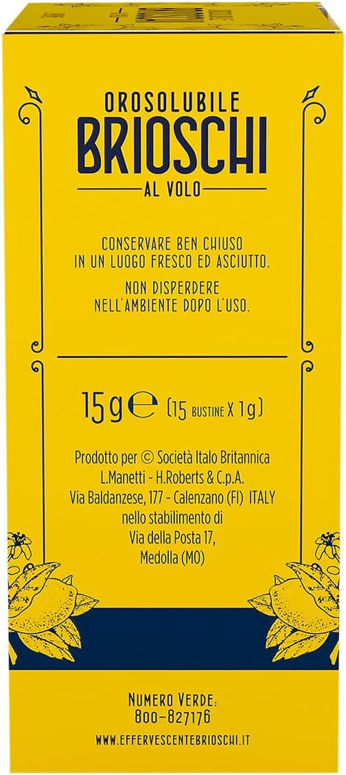 Orosolubile Brioschi al volo Limone - 15 Bustine di granulato digestivo e effervescente, da usare senz'acqua - Allo squisito gusto di limone - per un sollievo gustoso ed istantaneo - 15g