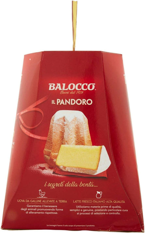 Descrizione prodotto PANDORO BALOCCO Ingredienti Uova fresche 20,6% Latte fresco pastorizzato alta qualità 1,8% Farina di frumento Zucchero Burro Lievito naturale (farina di frumento - acqua...