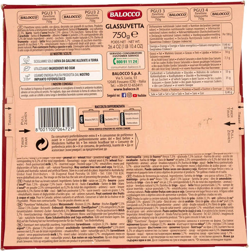 Panettone Balocco - Glass Uvetta Senza Canditi - 750 gr Il Panettone Balocco senza canditi, preparato con latte fresco italiano, con tanta uva sultanina e ricoperto...