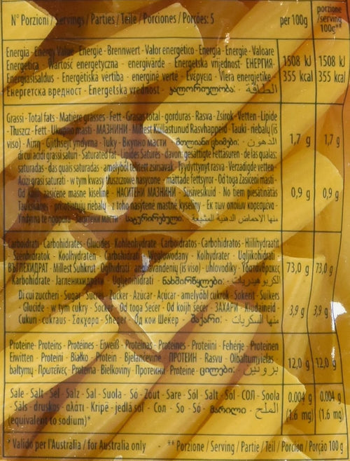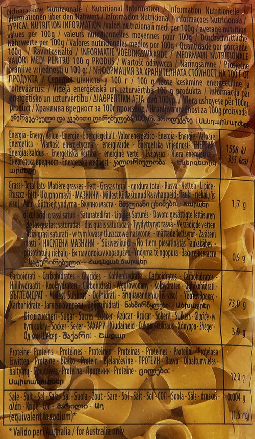 Ingredienti: grano duroAllergeni: granoDescrizione prodotto Questa pasta è stata prodotta secondo il processo di bronzo, come i giorni inantici. In questo modo le paste ottengono una...