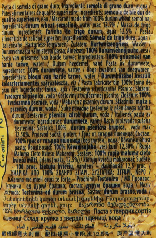 DIVELLADescrizione prodotto Divella Corallini 76, Pasta di Semola di Grano Duro 8 pezzi da 500 g [4 kg]DIVELLA. Ingredienti Granocodice: B01N637JFY