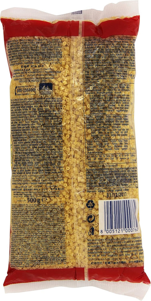 Divella Ditali 61 Pasta di Semola di Grano Duro - 500 gr
