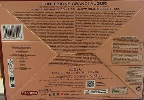 Balocco Buone Feste Pandoro 750g e Gran Dessert contri, 75cl