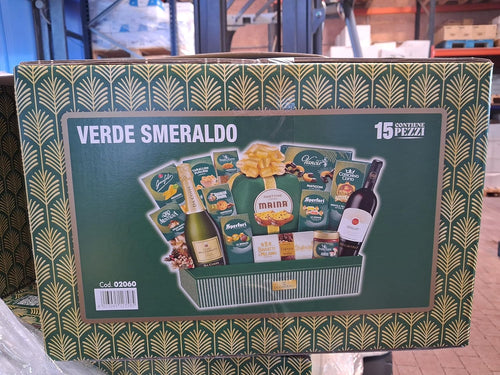 Cesto Natalizio Verde Smeraldo 15 pezzi