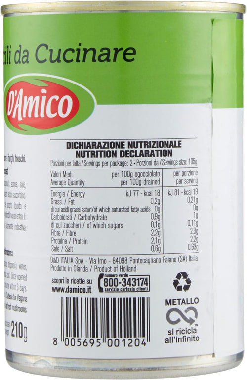 D'Amico - I Facili da Cucinare, Funghi Champignons, tagliati e lessati al naturale - 400 g