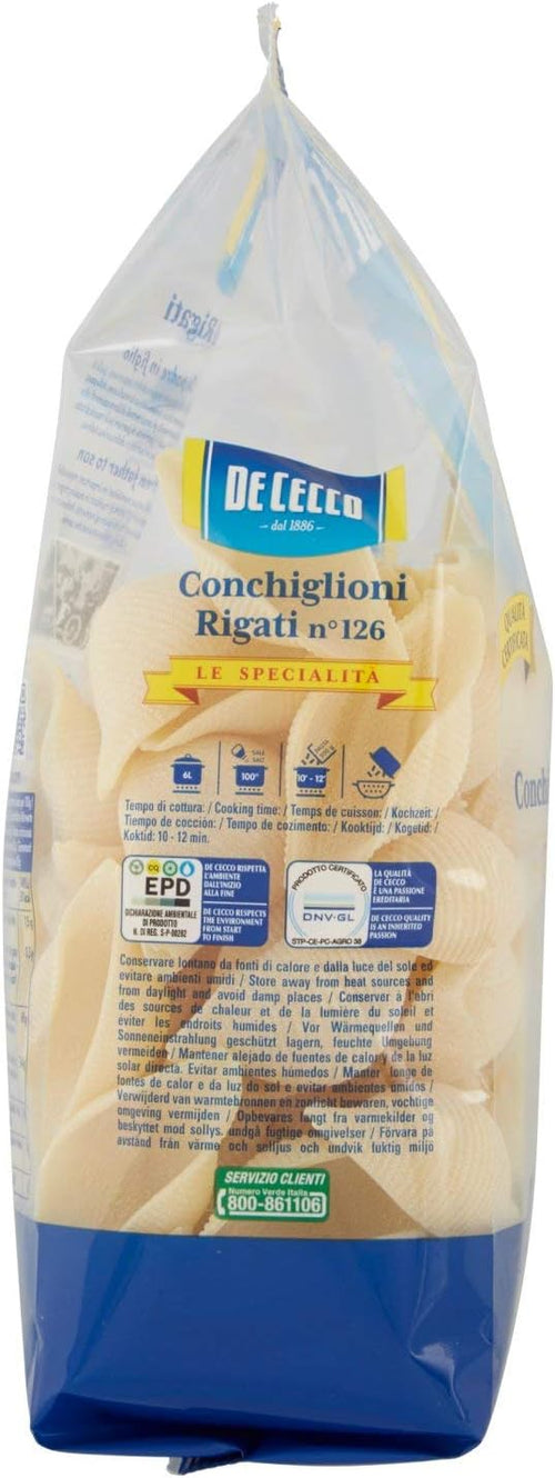 De Cecco - Conchiglioni Rigati n 126, Pasta di Semola di Grano Duro , 500 g