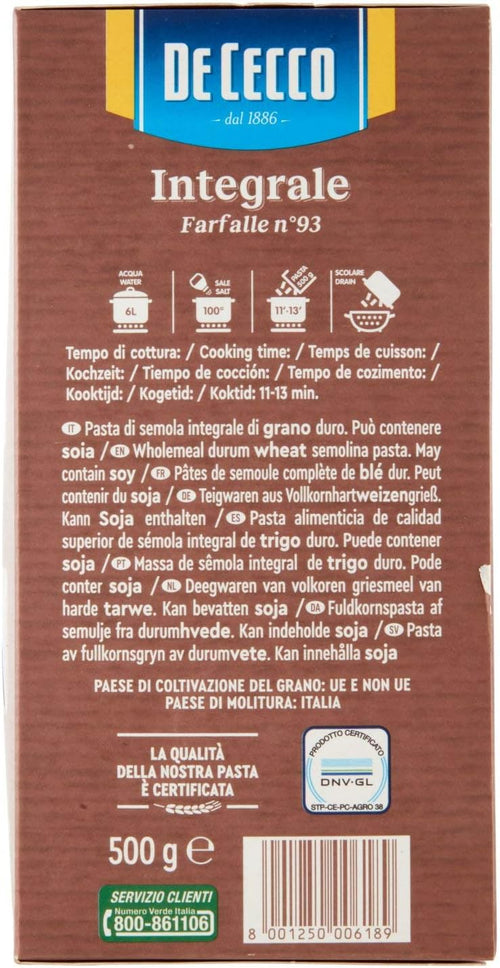 De Cecco 147710 Farfalle Integrali N°93, 500 Gr