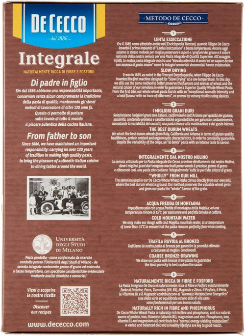 Pasta di semola di Grano DuroLavorazione tradizionale secondo la ricetta di oltre 125 anniMetodo De CeccoPaese di coltivazione del grano: UE e non UE. Paese di...