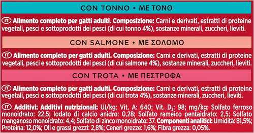 Alimento completo per gatti adulti8 confezioni da 6 pezzi da 50 g [48 pezzi, 2400 g]16 buste con anatra, 16 buste con pollo e 16 buste...