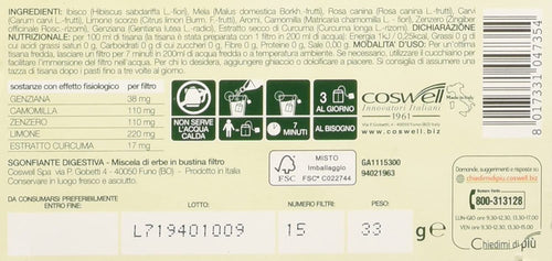 Descrizione Per aiutare la digestione e l’eliminazione dei gas intestinali. Contenuto della confezione Ognuna delle 2 confezioni contiene 15 filtricodice: B01LF0U54O