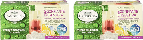 L'Angelica - Tisana a Freddo Sgonfiante Digestiva, Gusto Fragola e Limone - 2 confezioni da 15 filtri [30 filtri, 100 g]