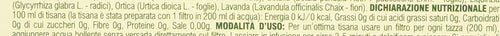 Tisana delicata con delle note aromaticheUn mix di piante dalle note proprietà drenantiFavorisce i fisiologici processi di eliminazione dei liquidi e dell’acqua in eccesso dai tessutiProdotto...