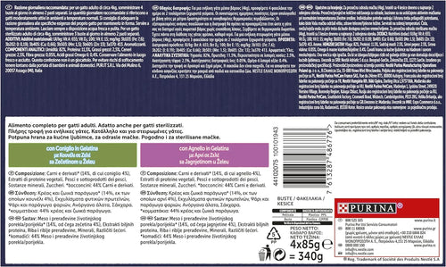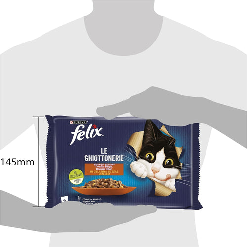 Purina Felix Le Ghiottonerie Cibo Umido per Gatti con Coniglio e Agnello, 4 buste da 85 g Ciascuna