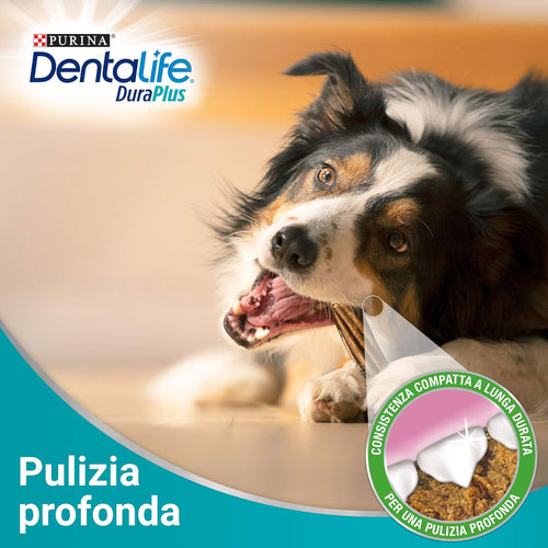 Dentalife cani DuraPlus, lo snack con azione pulente di lunga durataPurina Dentalife DuraPlus è lo snack per cani di taglia media da 12 a 25 kgDentalife...