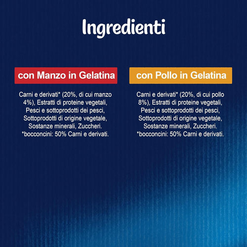 Alimento completo che soddisfa al 100% il fabbisogno giornaliero del tuo amico a 4 zampeCibo per gatti adulti con la giusta combinazione di minerali bilanciatiTeneri bocconcini...