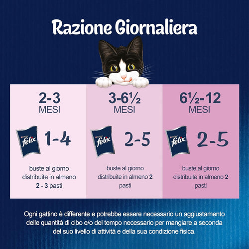 Felix Le Ghiottonerie Gatto Junior è il cibo per gattini che fornisce il 100 percent del fabbisogno nutrizionale giornaliero al tuo cuccioloRicette gustose con manzo e...