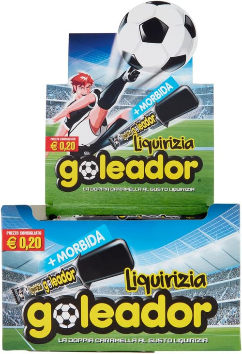 Goleador Liquirizia La Doppia Caramella Gommosa, Gusto Liquirizia, 2 Caramelle per Incarto, Box da 200 PezziUno dei classici Goleador: la doppia caramella gommosa al gusto liquirizia.Goleador...