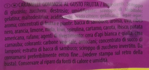 Sciroppo di glucosio;Zucchero;Amido;Gelatina;Succo di limone da concentrato (2,3%);Acidificanti: acido citrico, acido malico;Concentrato di zenzero (0,7%);Concentrati di frutta e piante: cartamo, arancia, limone, bacca di sambuco;Aroma;Agente di...