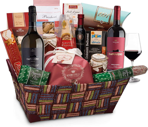 REGALI REGALI | Confezione Regalo "Selezione Mediterranea", Cesto Alimentare Natalizio, Esclusiva Cuspide Contenente Vino, Aceto Balsamico di Modena, Pasta e Tanto Altro, Idea Regalo