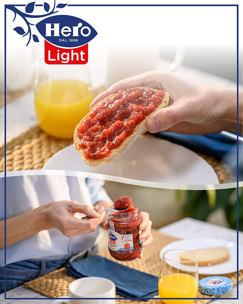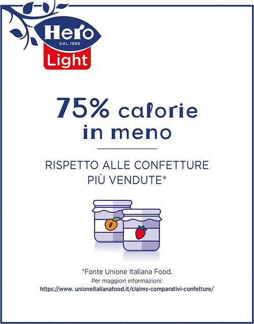 Hero Light Confettura di Albicocche light, 8 vasetti da 280 gr, marmellata e confettura extra, frutta di alta qualità, senza conservanti e senza coloranti, pochissime calorie per porzione