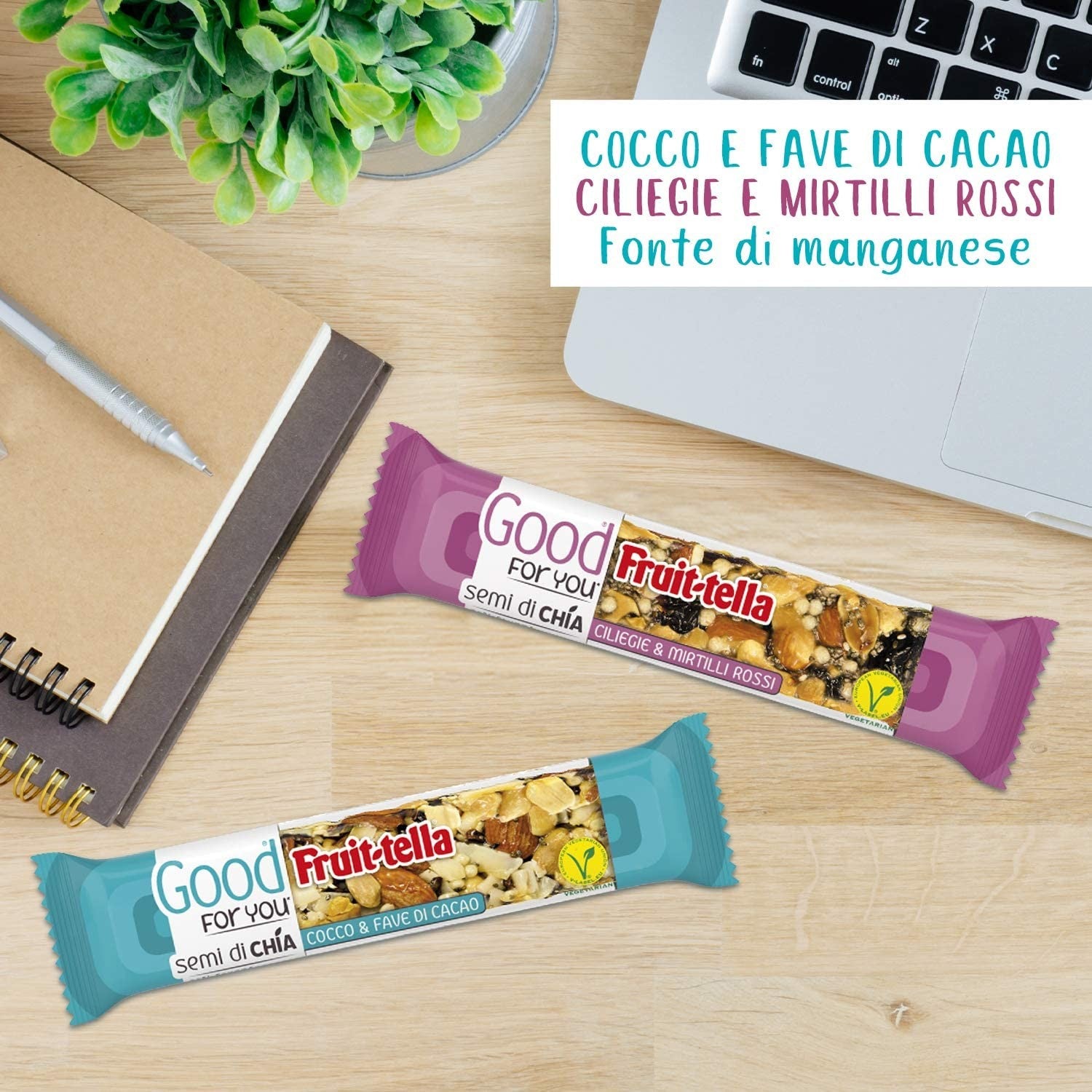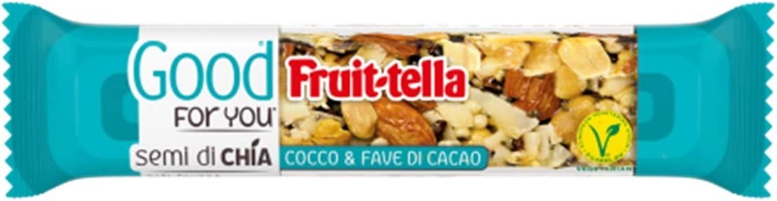 Fruittella Good For You Barrette Cocco e Fave di Cacao, con Mandorle e Semi di Chia, Barretta con Frutta Secca e Disidratata, Snack Sano Senza Glutine e Ricco di Fibre, Box da 16 Pezzi