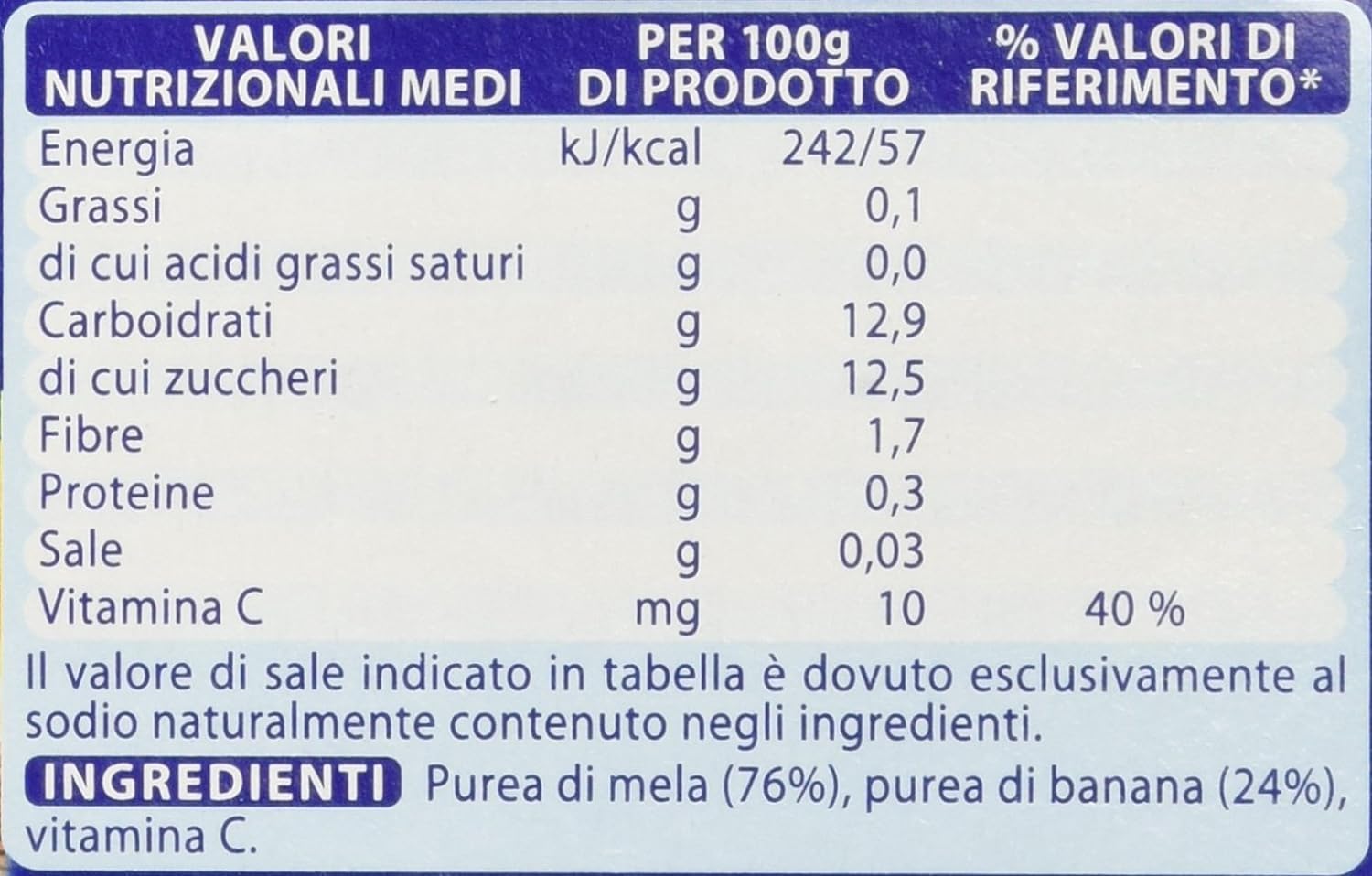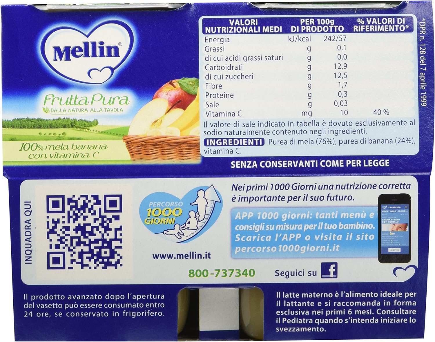Mellin Frutta Pura Mela e Banana - 24 Vasetti da 100 gr