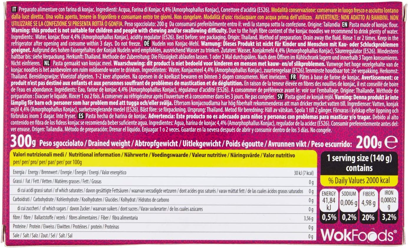 WokFoods Linguini Konjac Japanese Classic Food Gluten Free / Preparato Alimentare con Farina di Konjac Classico Cibo Giapponese - 2 x 200 Gram