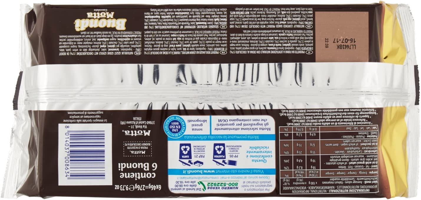 Buondì al Cioccolato a Lievitazione Naturale con Crema - Pacco da 6, 276 gr