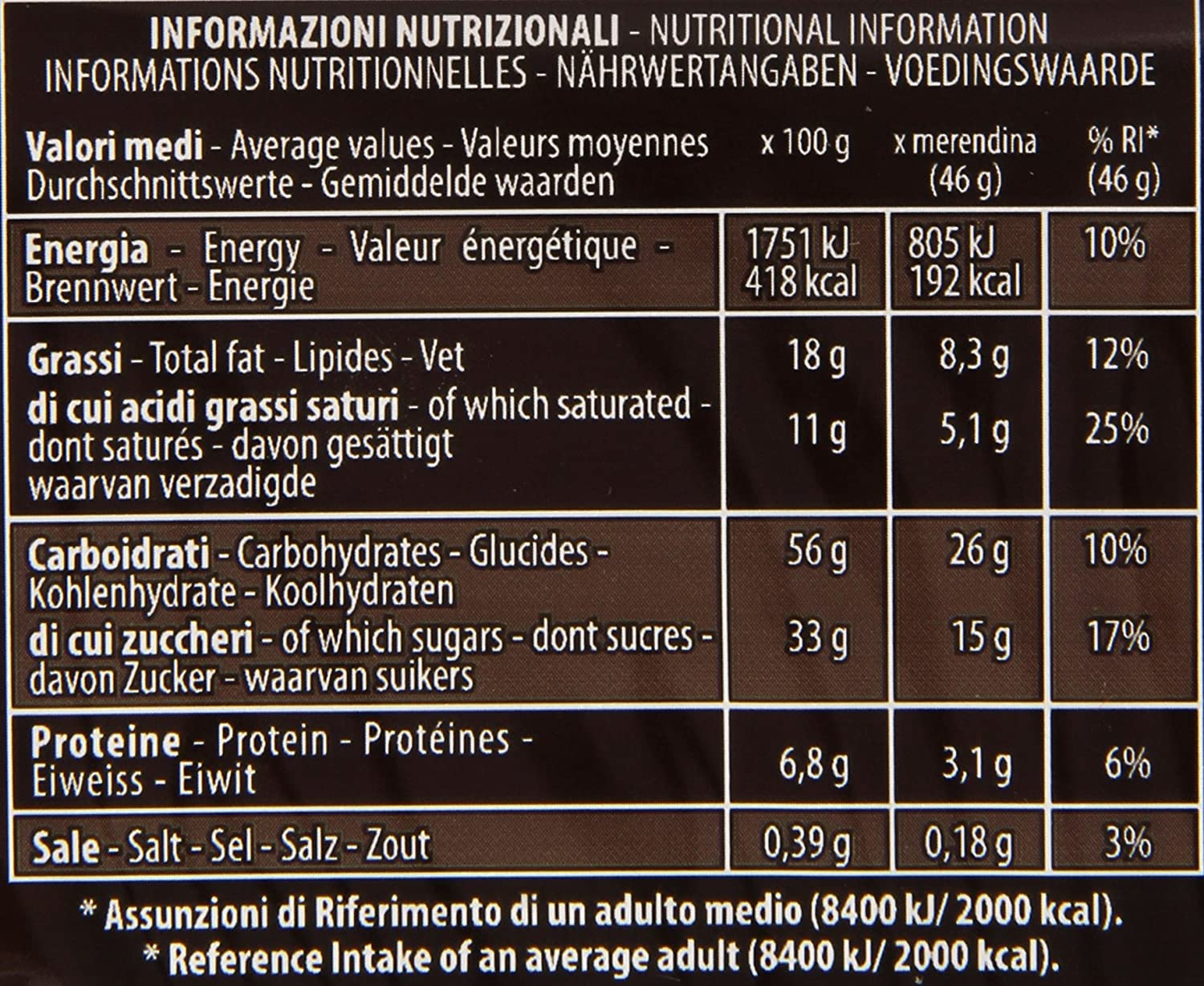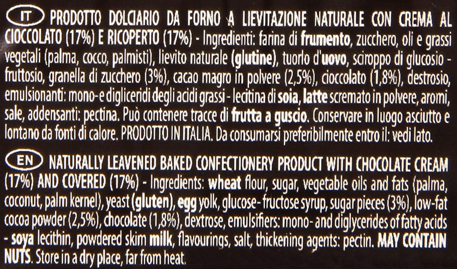 Prodotto dolciario da forno a lievitazione naturale con crema al cioccolato (17%) e ricoperto (18%)
