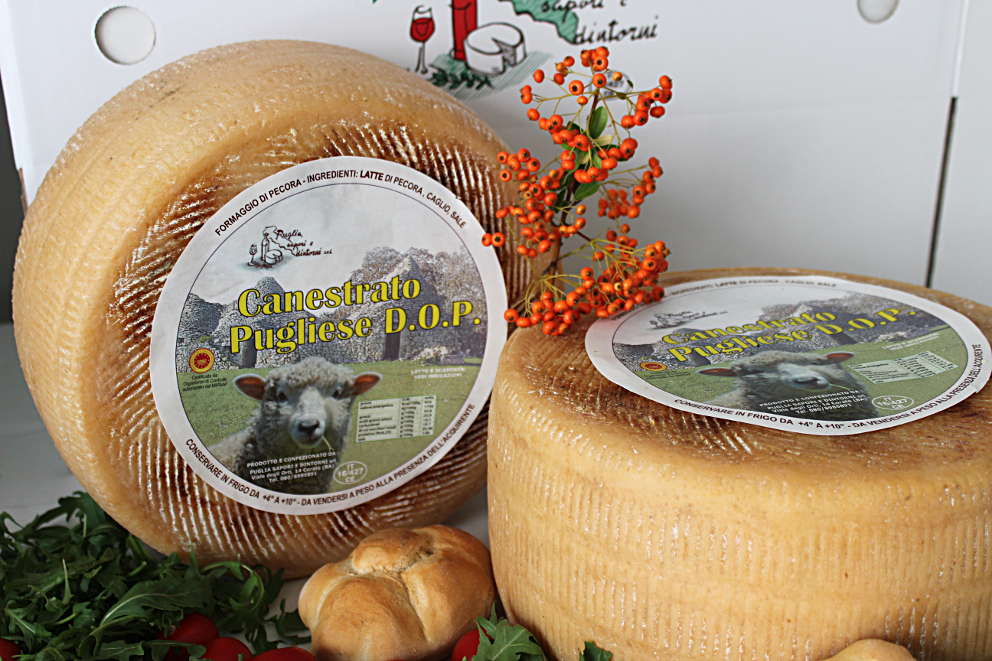 Il “Canestrato Pugliese D.O.P” è un formaggio a pasta dura semicotta prodotto secondo un disciplinare molto severo che prevede l’utilizzo del miglior latte del territorio e processi che ne assicurano ottime caratteristiche organolettiche.