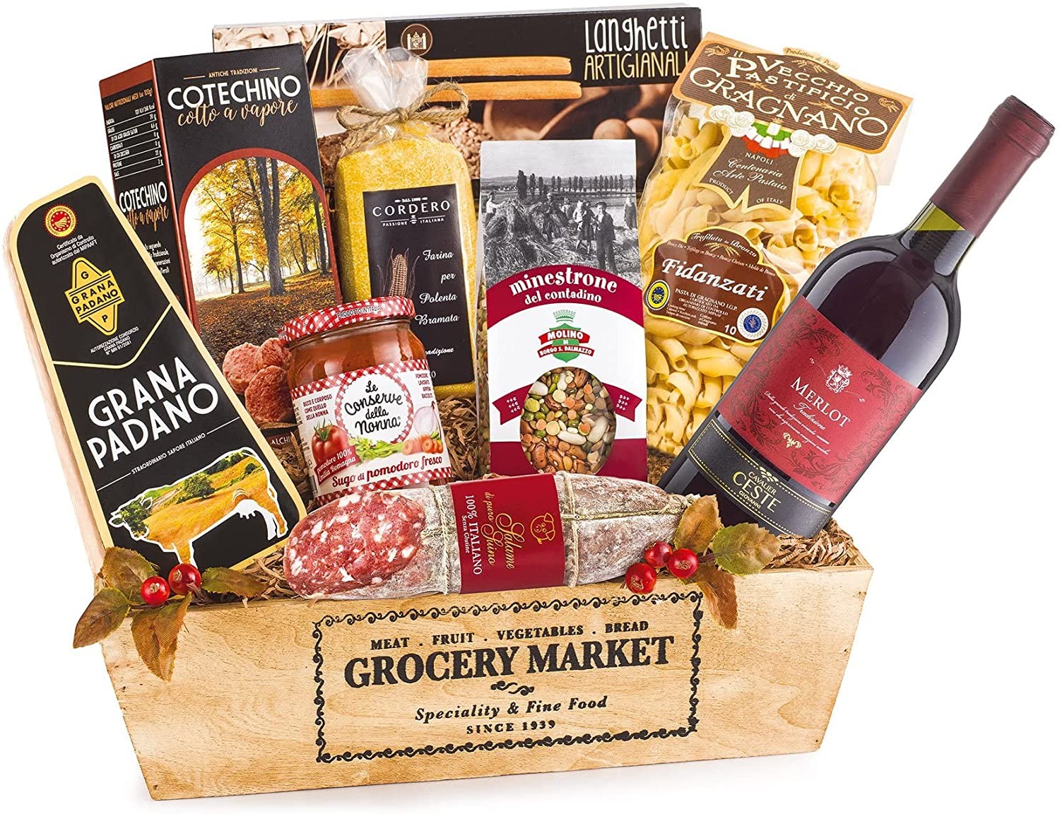 Cesto Natalizio "CASSETTA CONTADINA" con 10 Pezzi , idea Regalo