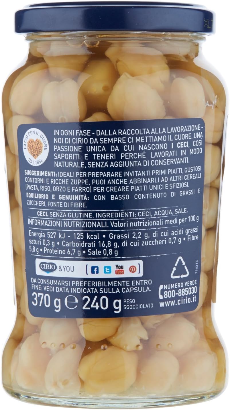 I ceci cirio sono così teneri e gustosi perché vengono raccolti, lavorati con cura e successivamente cotti seguendo un procedimento completamente naturale, che non prevede l'aggiunta di conservanti.